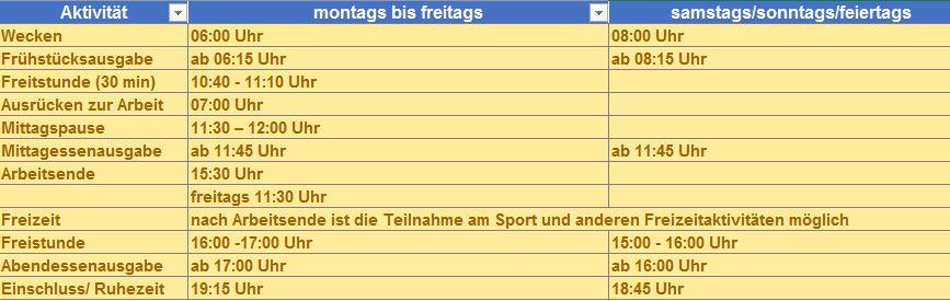 Hier sehen Sie den Tagesablauf der Gefangenen der JVA Meppen:
