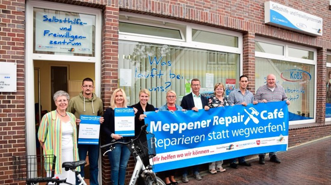 Inhaftierte der JVA Meppen und Ehrenamtliche des Freiwilligenzentrums bieten einmal pro Quartal den Service, dass Bürger Hilfe bei kleinen Reparaturen in den Bereichen Technik, Holz, Metall, Textiles, etc. erhalten.